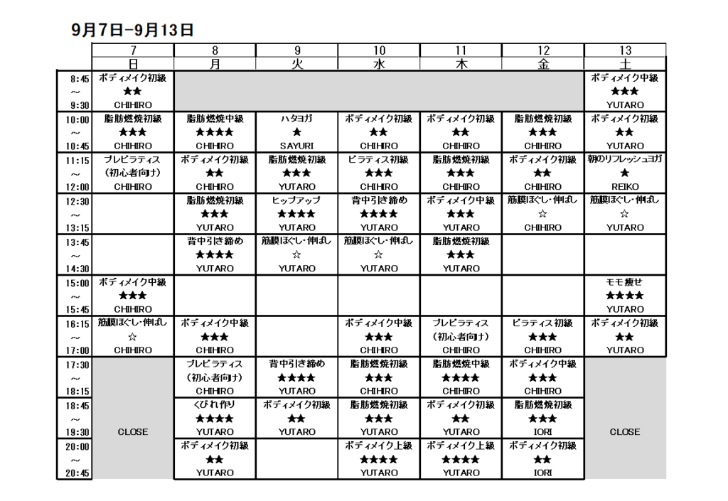 9/7-13スケジュール